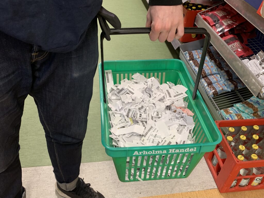 Vi har nya priser på plats i vårt kassasystem för ca. 2 000 varor. Och lika många gaveletiketter är nedplockade från hyllorna.